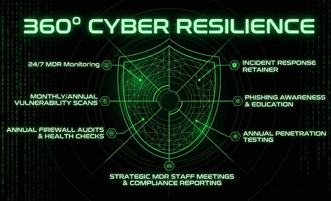 Your IT team keeps your systems running; we keep them secure. In 2026, cybersecurity requires specialized 24/7 monitoring (SOC) and deep audits that go beyond standard IT maintenance. We act as a specialized layer of defense that supports your existing team.